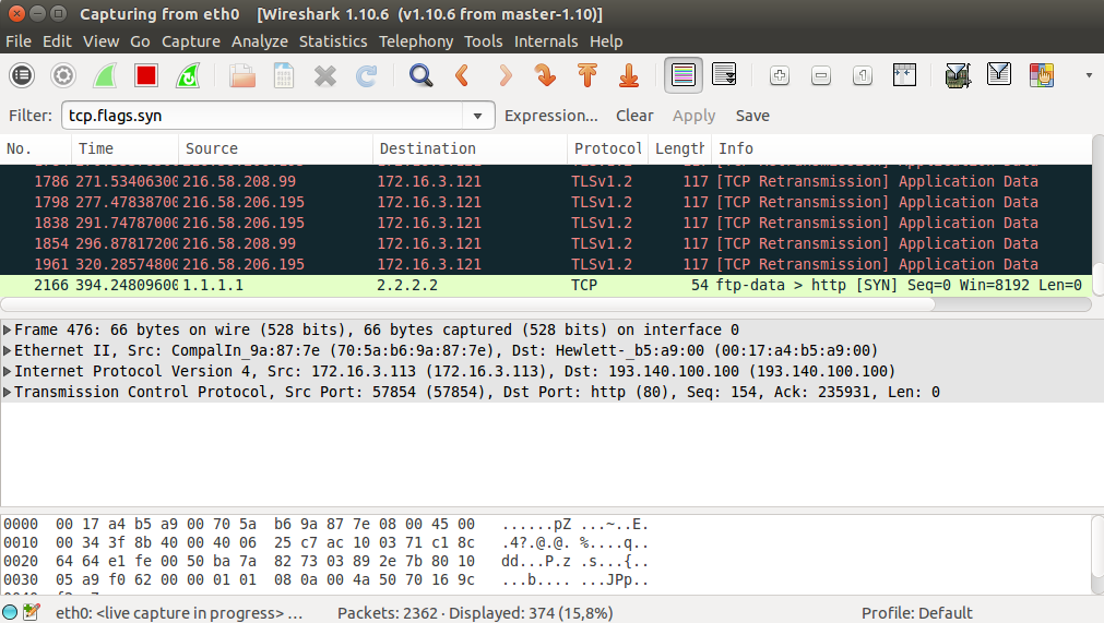 Filter : tcp.flags.syn