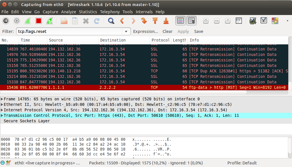 Filter : tcp.flags.reset