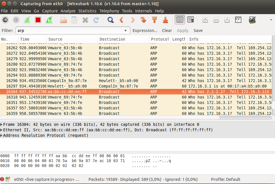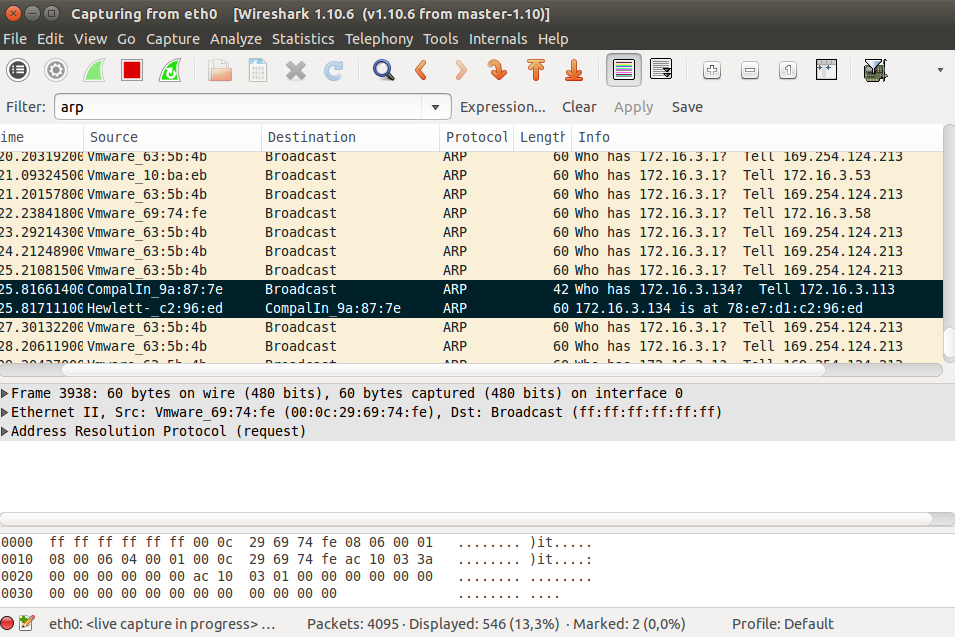 Mac adresimizle broadcast yaparak 172.16.3.134 ip'si hangi mac adresi üzerinde sorusunu sorarız. Wireshark ile Görüntüleme