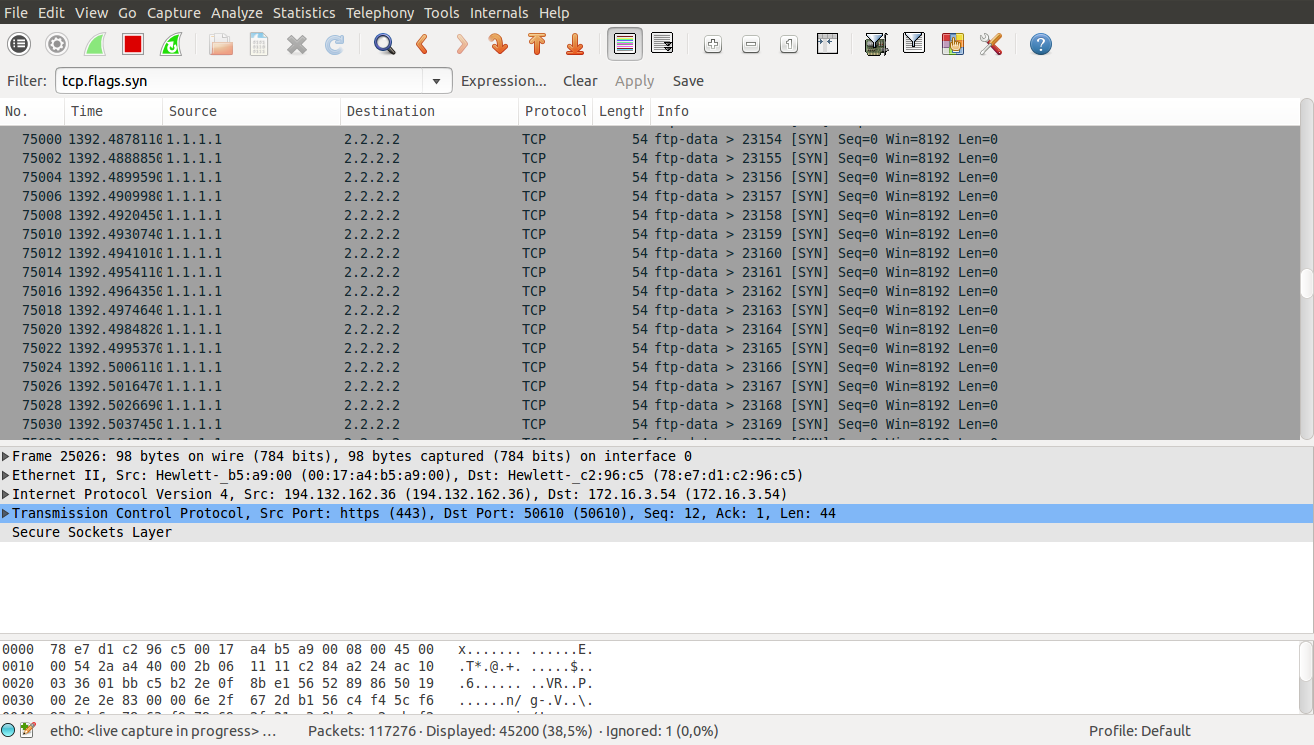 Filter : tcp.flags.syn