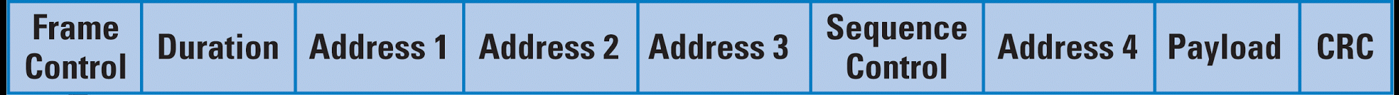 BackgroundKablosuz ağlarda haberleşme işlemi frame'ler (çerçeveler) üzerinden gerçekleşir. 802.11 standartlarına uygun bir frame'in iç yapısı aşağıdaki gibidir.